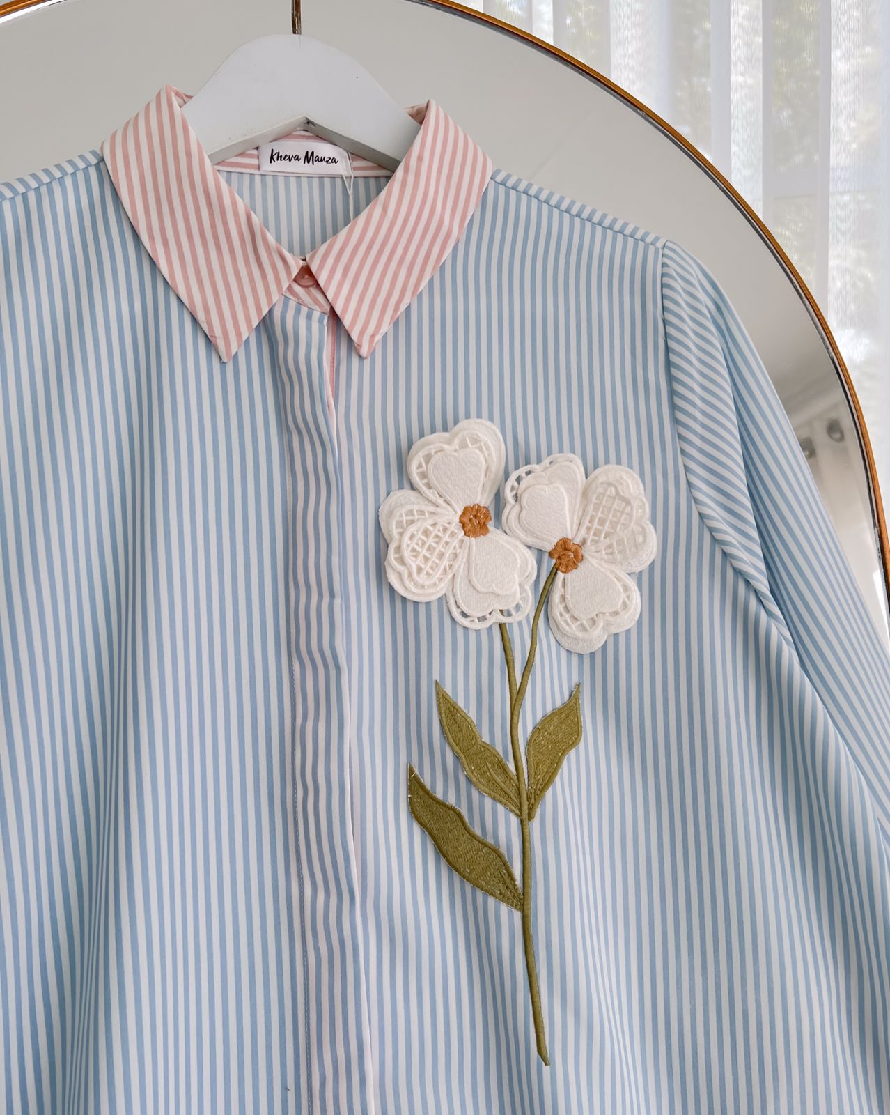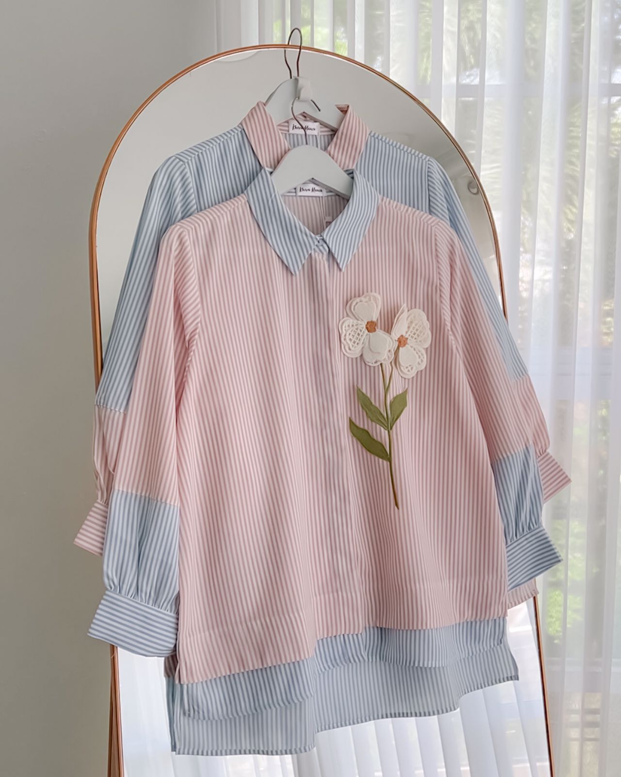 Bahannya agak bertekstur namun handfeelnya tetap nyaman, tidak terlalu tebal, tidak kaku, ringan, tidak terlalu gampang kusut dan flowy, jatuhnya cantik saat dipakai