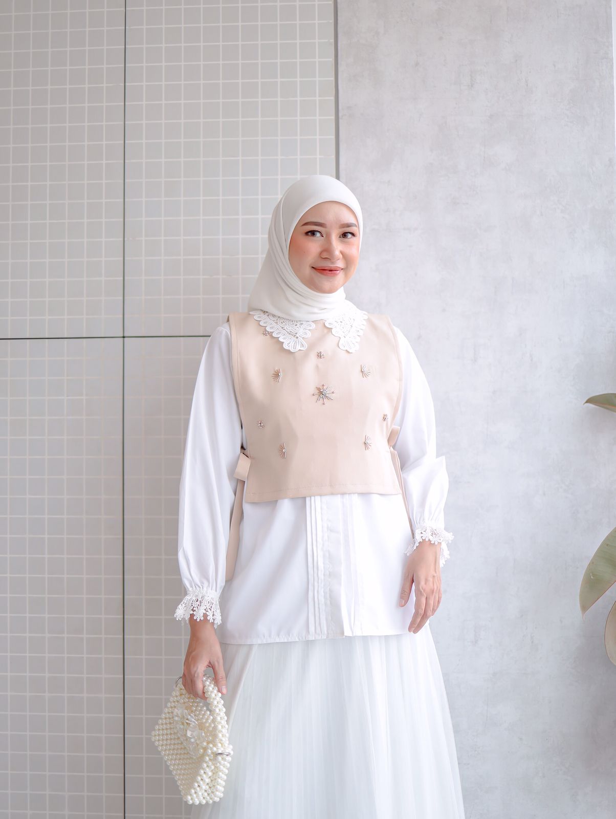Bahannya lembut, super ringan, transparan, tidak gatal, agak glosy, dan flowy, jatuhnya cantik saat dipakai