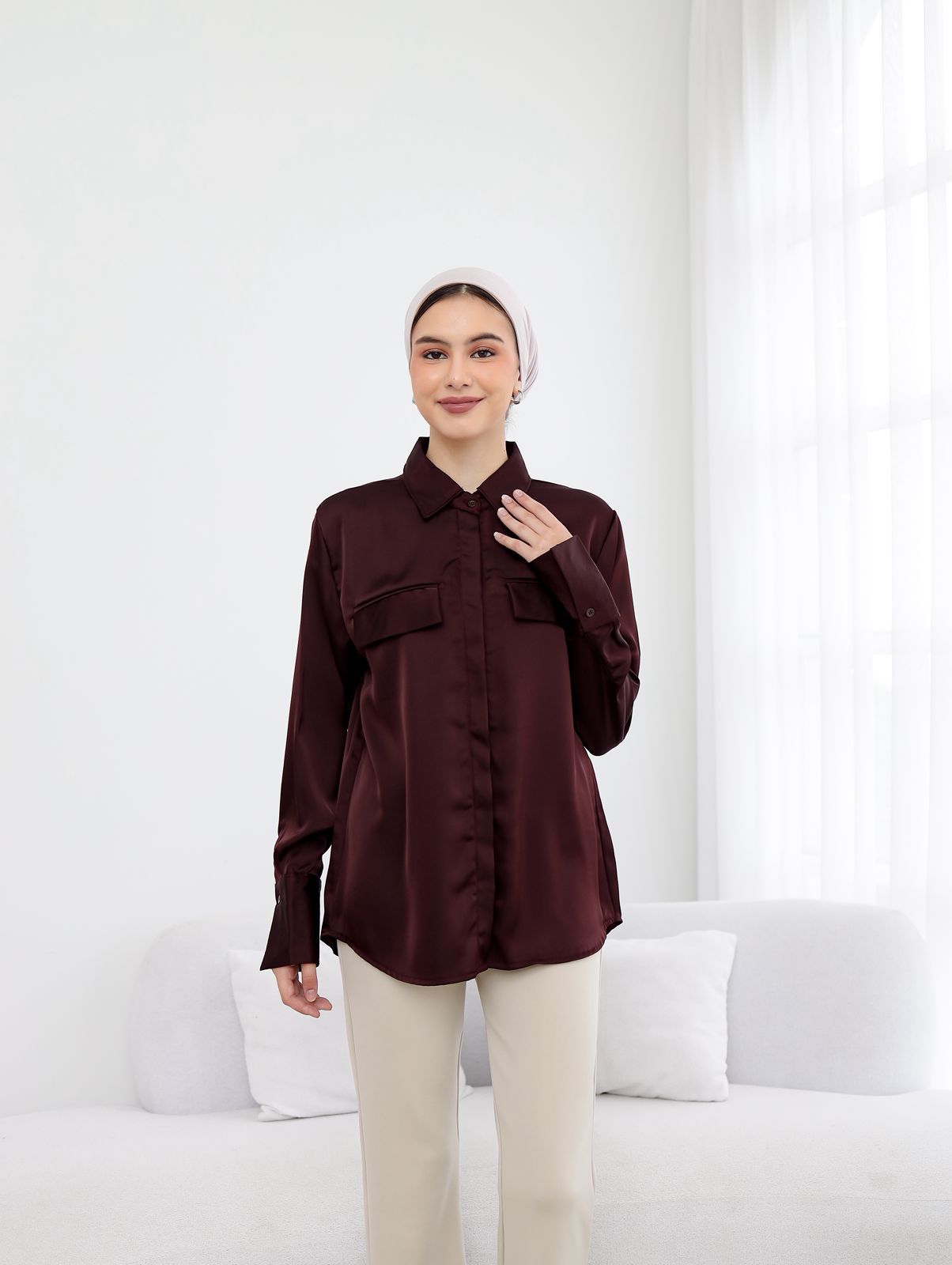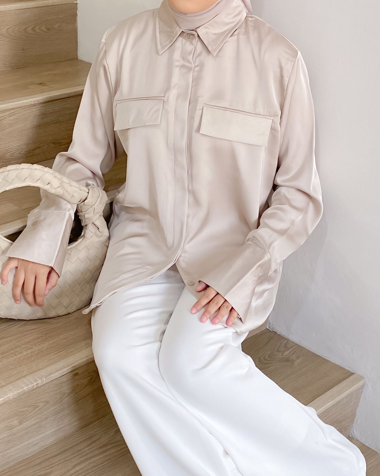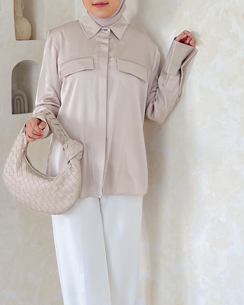 Bahannya lembut, tidak kaku, tidak terlalu tebal, cukup glossy, ringan dan flowy, jatuhnya cantik saat dipakai