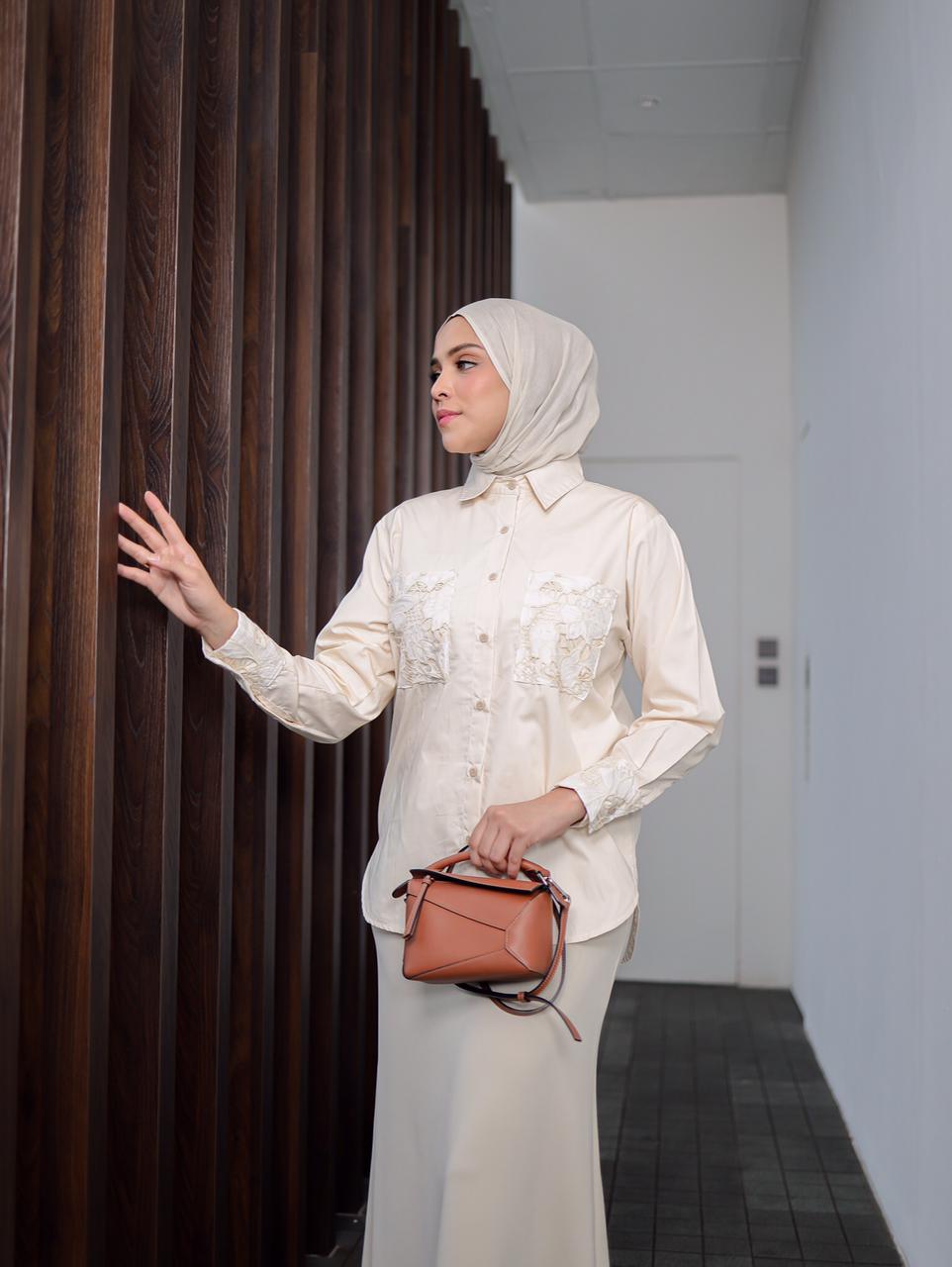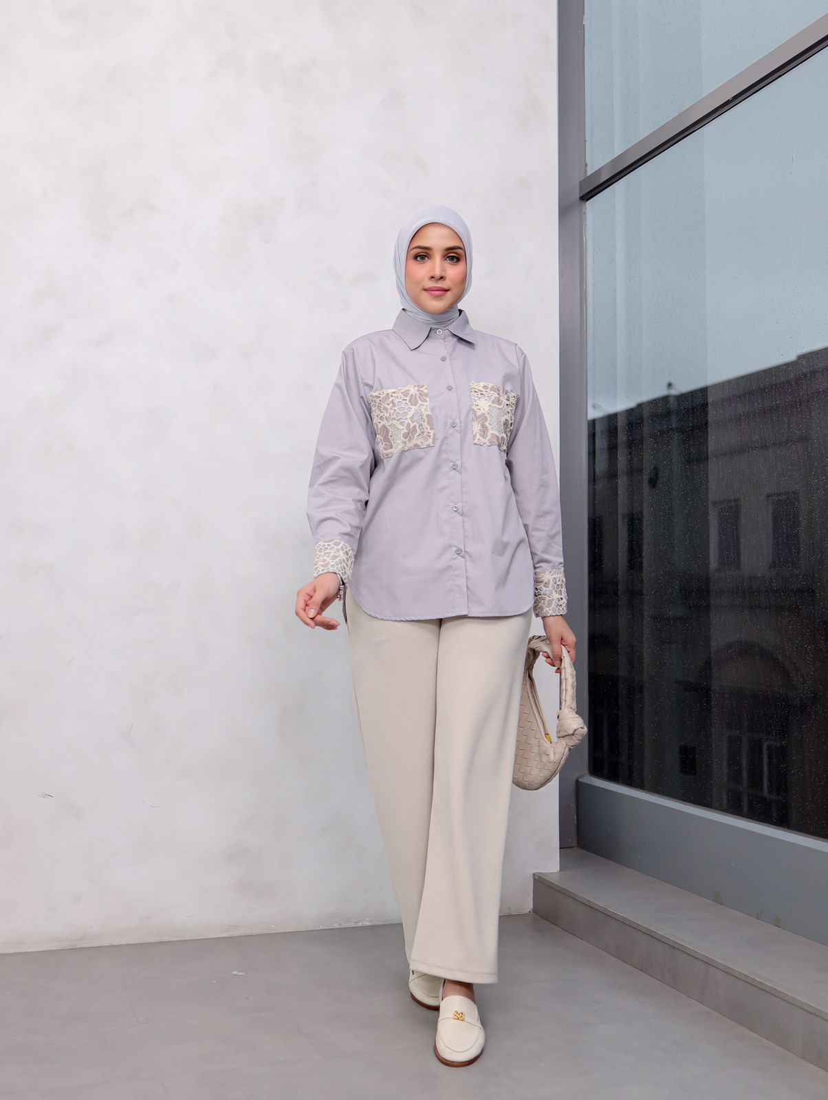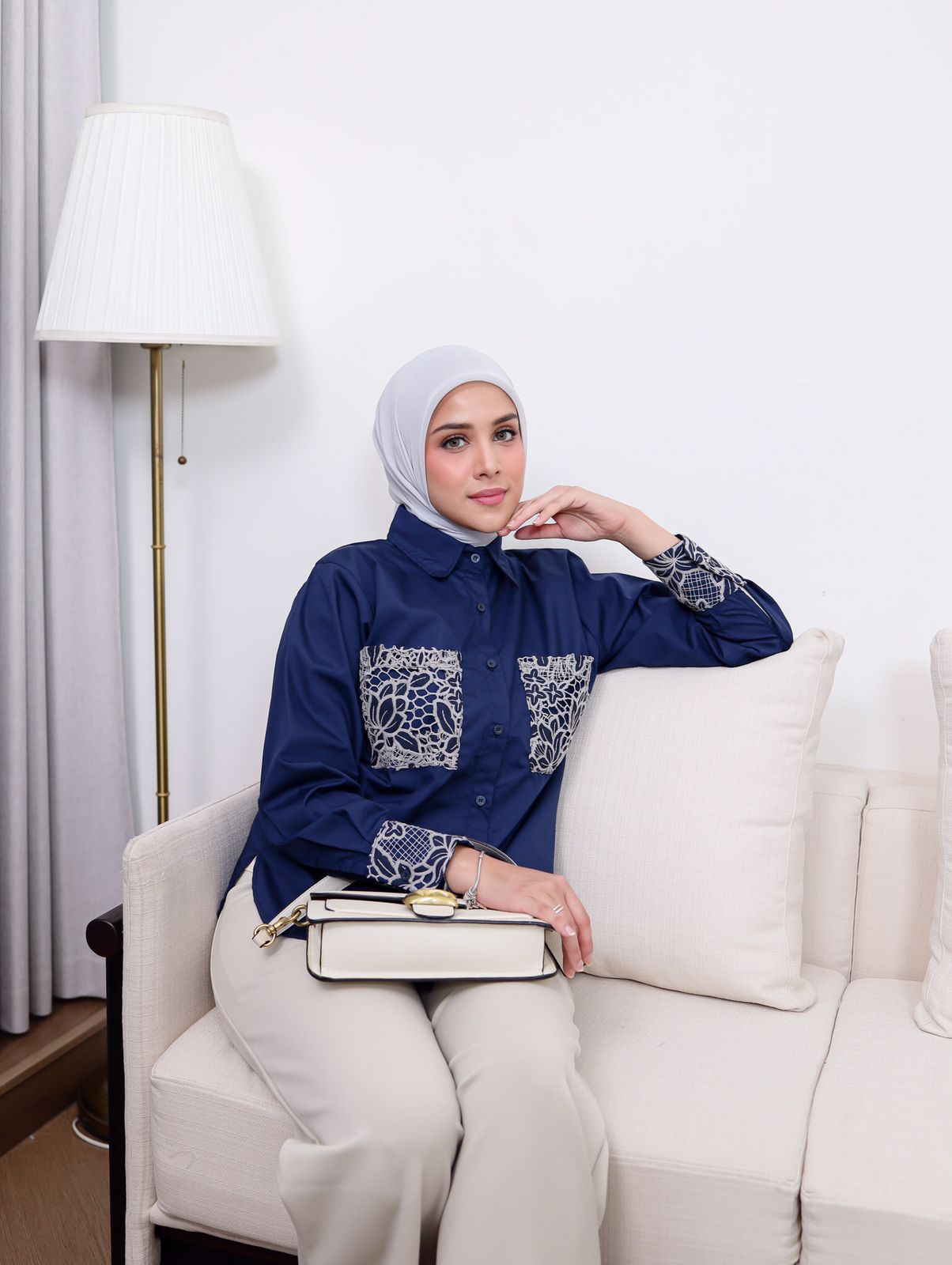 Bahan halus, ringan, tidak terlalu tebal, tidak kaku, & flowy, jatuhnya cantik saat dipakai. Detail lace di saku & tangannya bikin looknya makin manis dan tidak plain.