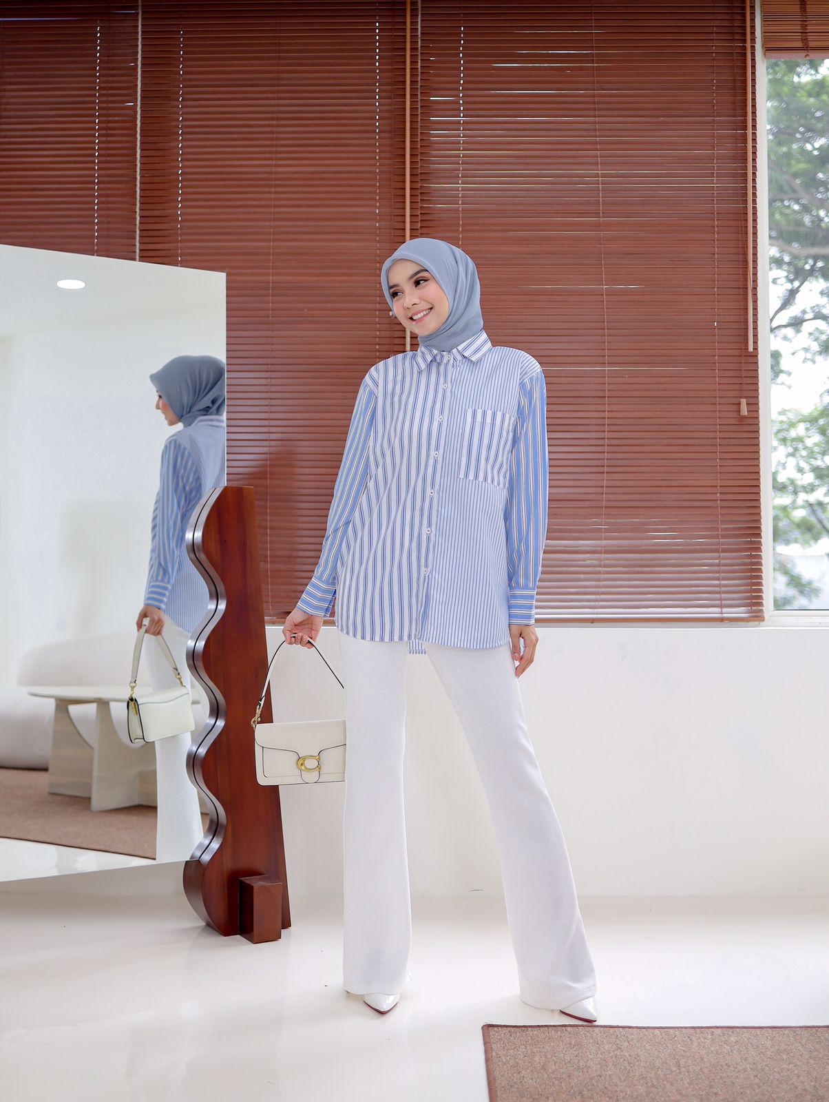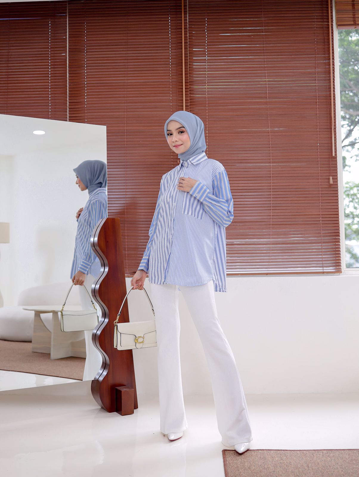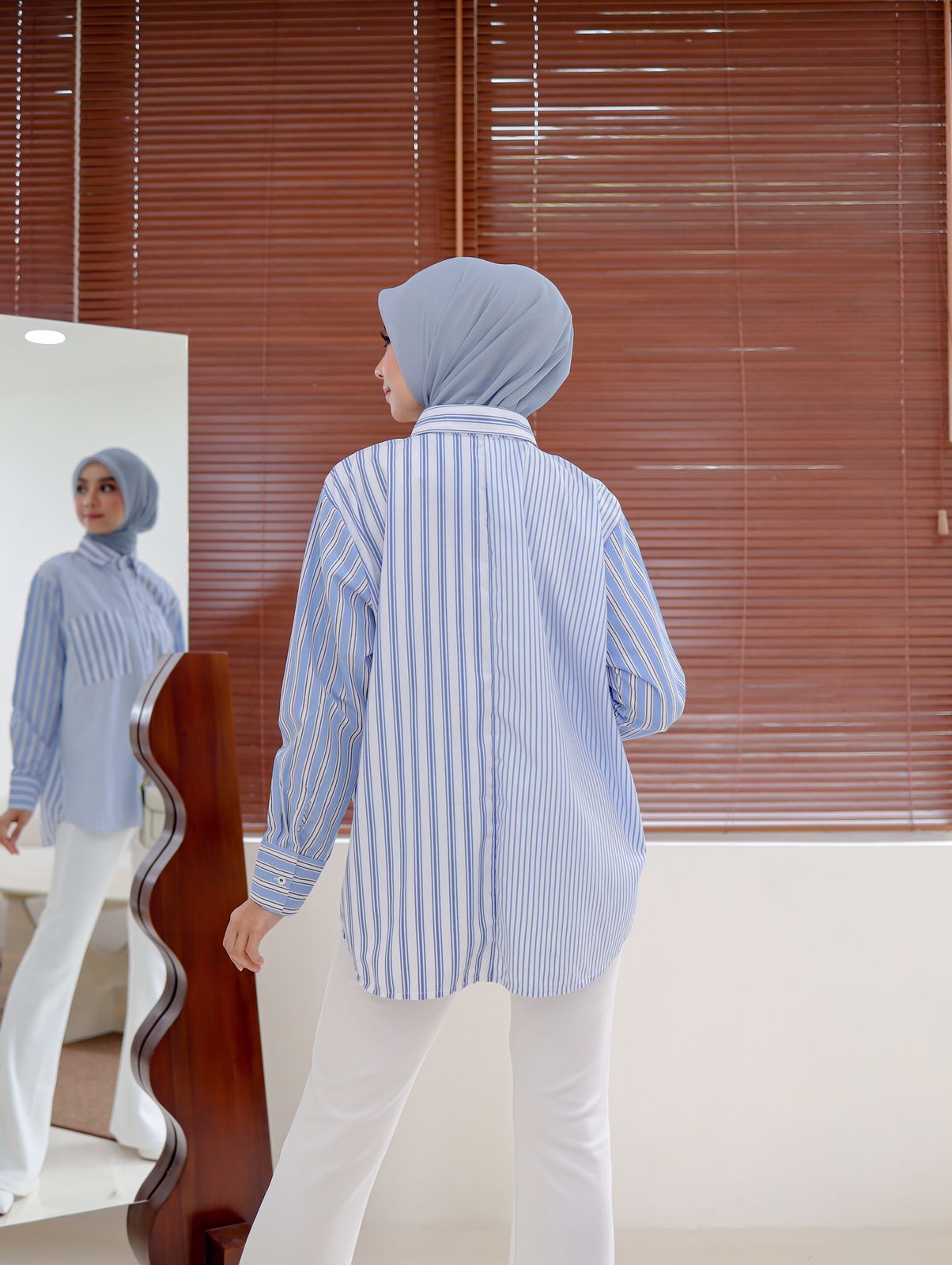 Bahannya halus, ringan, tidak telalu tebal, tidak kaku, dan flowy, jatuhnya cantik saat dipakai.
