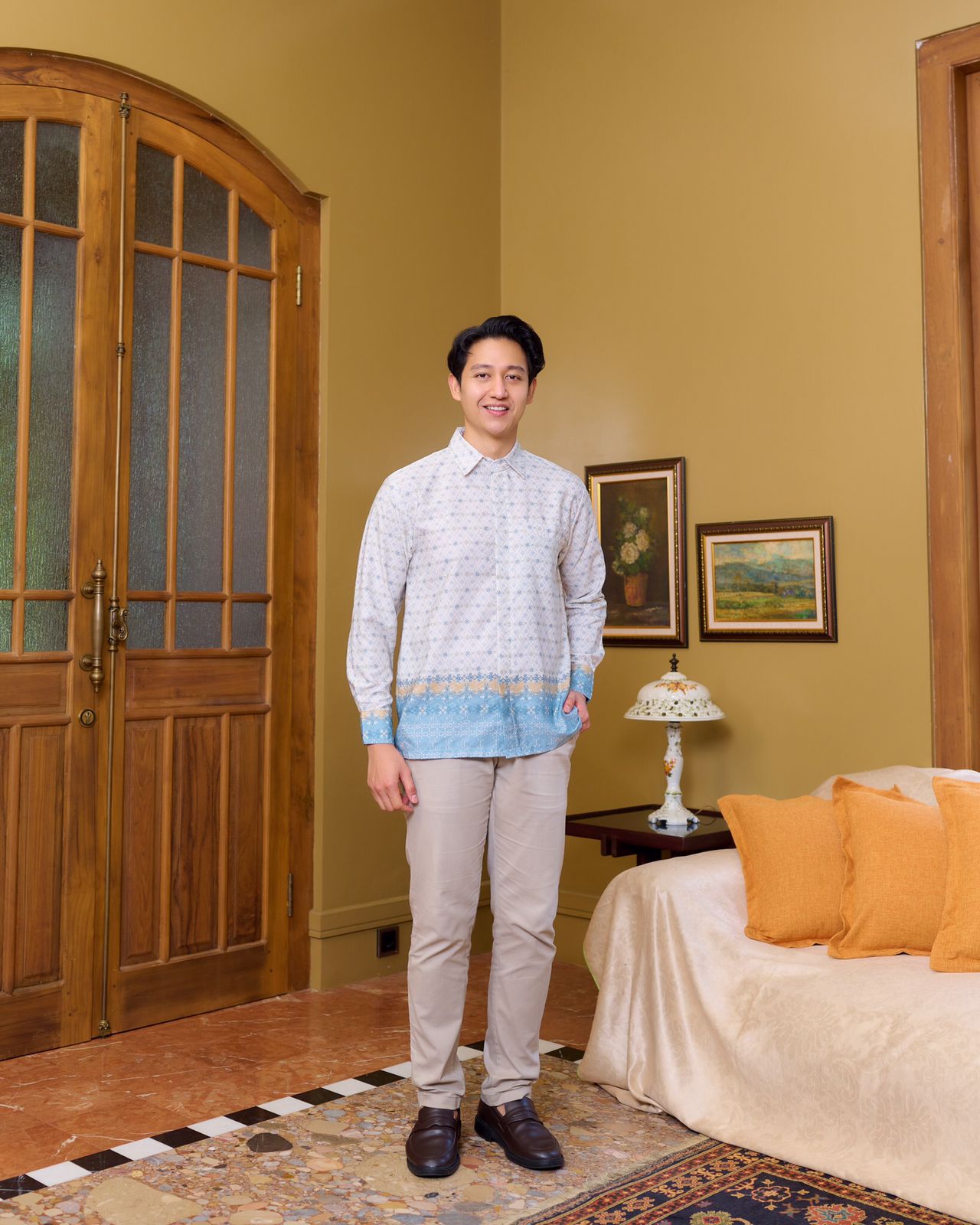 Bahan ini bertekstur namun handfeel nya tetap nyaman, bahannya ringan, tidak terlalu tebal, tidak kaku, tidak panas, tidak gampang kusut, pola tekstur unik dan flowy jatuhnya bagus saat dipakai.